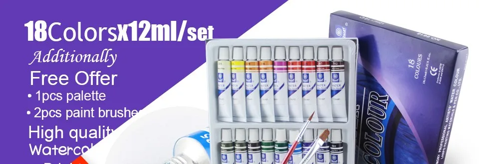 12 мл * 18 цветов Памяти Акварельные Краски набор высокое качество Воды Цвет Краски для Художников